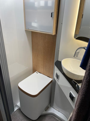Das Trennklo ist eine supertolle Sache. Wir müssen nie wieder in diese ekligen Chemieklo-Entsorgungsecken. Megapraktisch. Nie bereut. Aber eine Drehkonsole wollen wir noch nachrüsten, damit wir