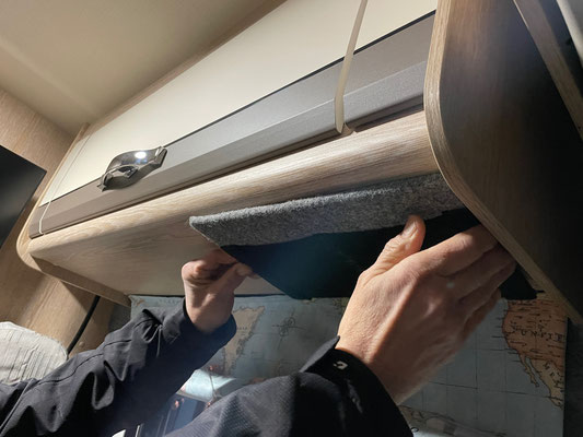 In der Heckgarage waren wir nicht so zimperlich. Da haben wir uns die Filzplatte gespart und die Gegenstücke der Druckknöpfe direkt ins Holz geschraubt. Das geht nämlich auch.
